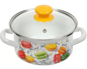Эмалир. Кастрюля 1,5л "Цветное печенье " цил., ст/кр, н/о, белый 51904-352/4.02 (Керчь) /4/