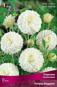 Георгина помпонная Петрас Веддинг (белый, диаметр цветка 10см, 1шт, I)