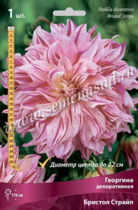Георгина декоративная Бристол Страйп (розово-белый полосатый цветок с волнистыми лепестками, 1шт, I)